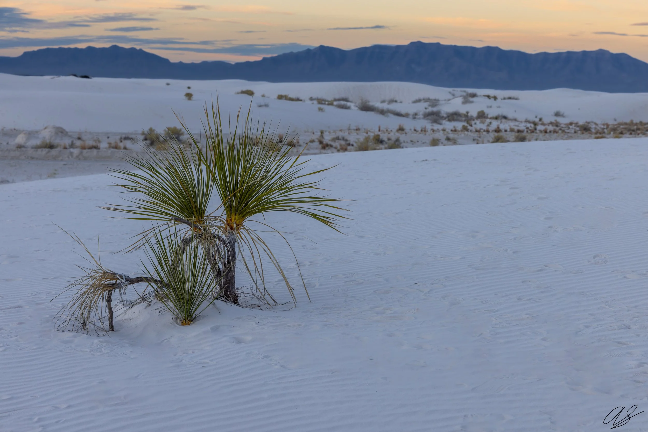 I spotted this yucca right before sunrise on a cold winter morning out at the dunefield. I liked how it had a Charlie Brown christmas tree feel to it - with the plant drooping down on the right side. I felt that this scene speaks to the resilience of these plants growing in this harsh environment of shifting sand.