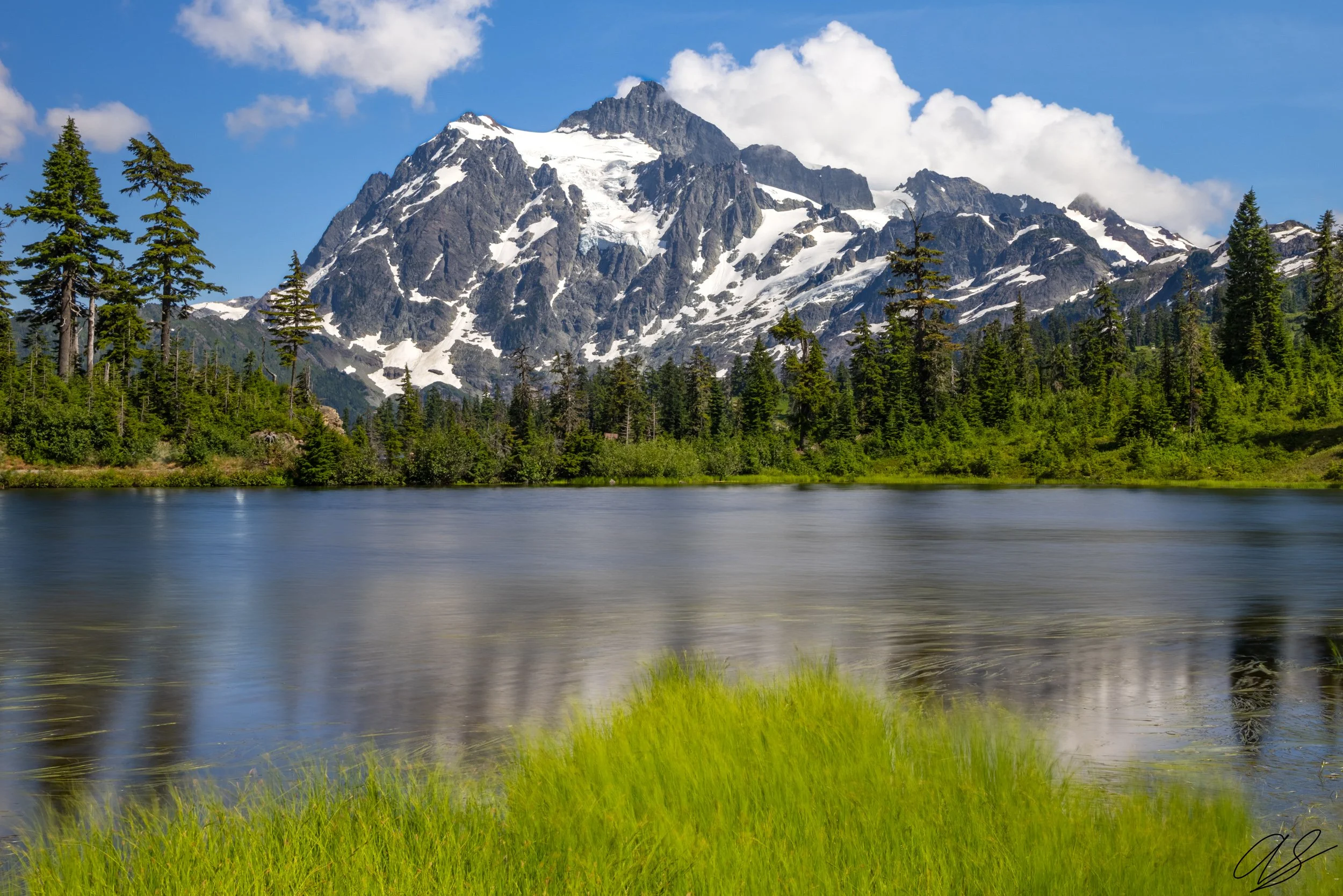 While maybe not the tallest peak in the Cascades, Mount Shuksan is the most stunning. The peak rises dramatically over its surroundings and is covered with glaciers - in some areas, the glaciers are over 300 feet thick. This picture was taken from Picture Lake, which is a good name for this little lake! I used an ND filter to capture this scene - which smoothed out the texture of the water and captured the movement of the waving grass in the wind - which created a nice, soft foreground.