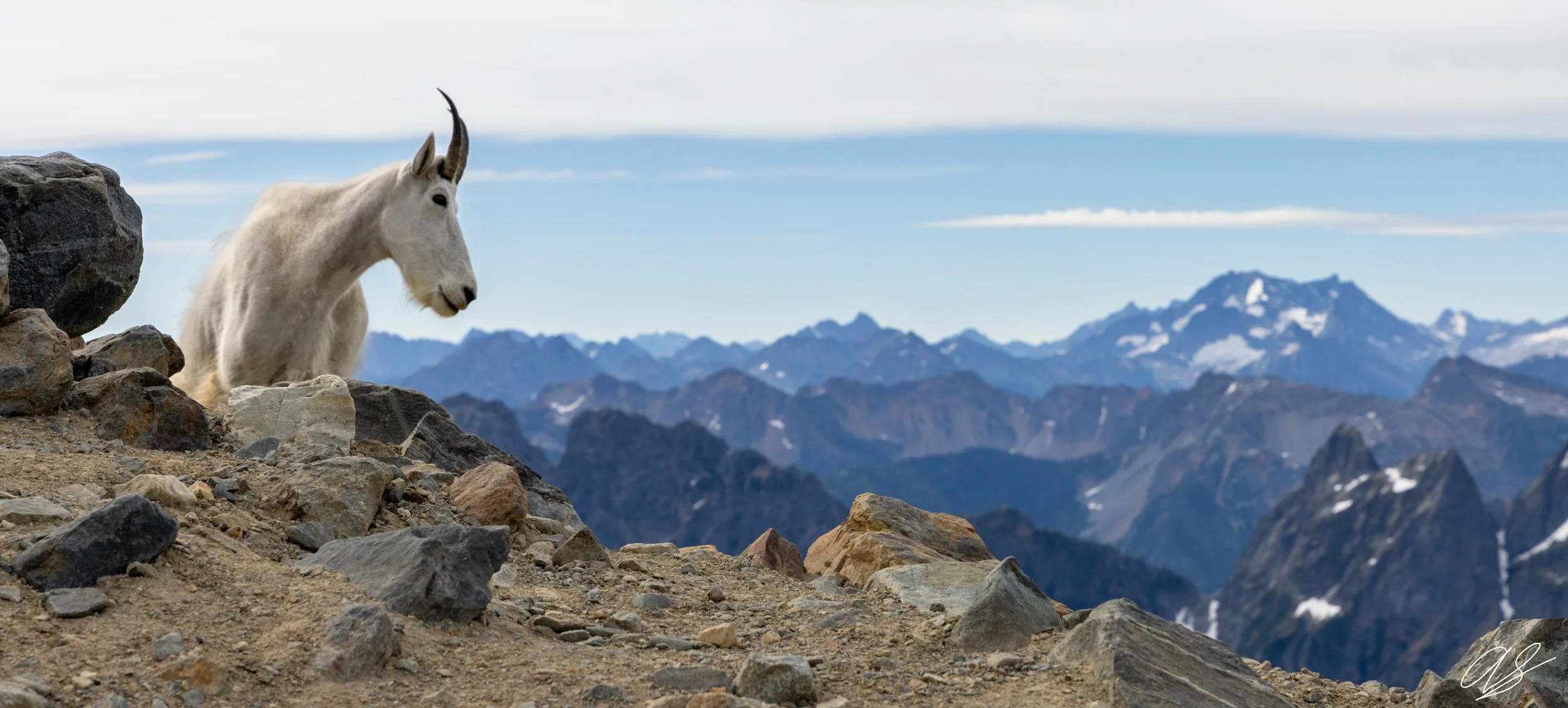 I found this goat after a 13 mile, 4,000 foot climb up to Sahale Glacier. While it was a beautiful campsite on its own, the goats were amazing to watch. I scrambled up a rocky bluff to take this image. As I took the image, the mountain goat turned his head towards the scene, as if he were a king surveying his domain.