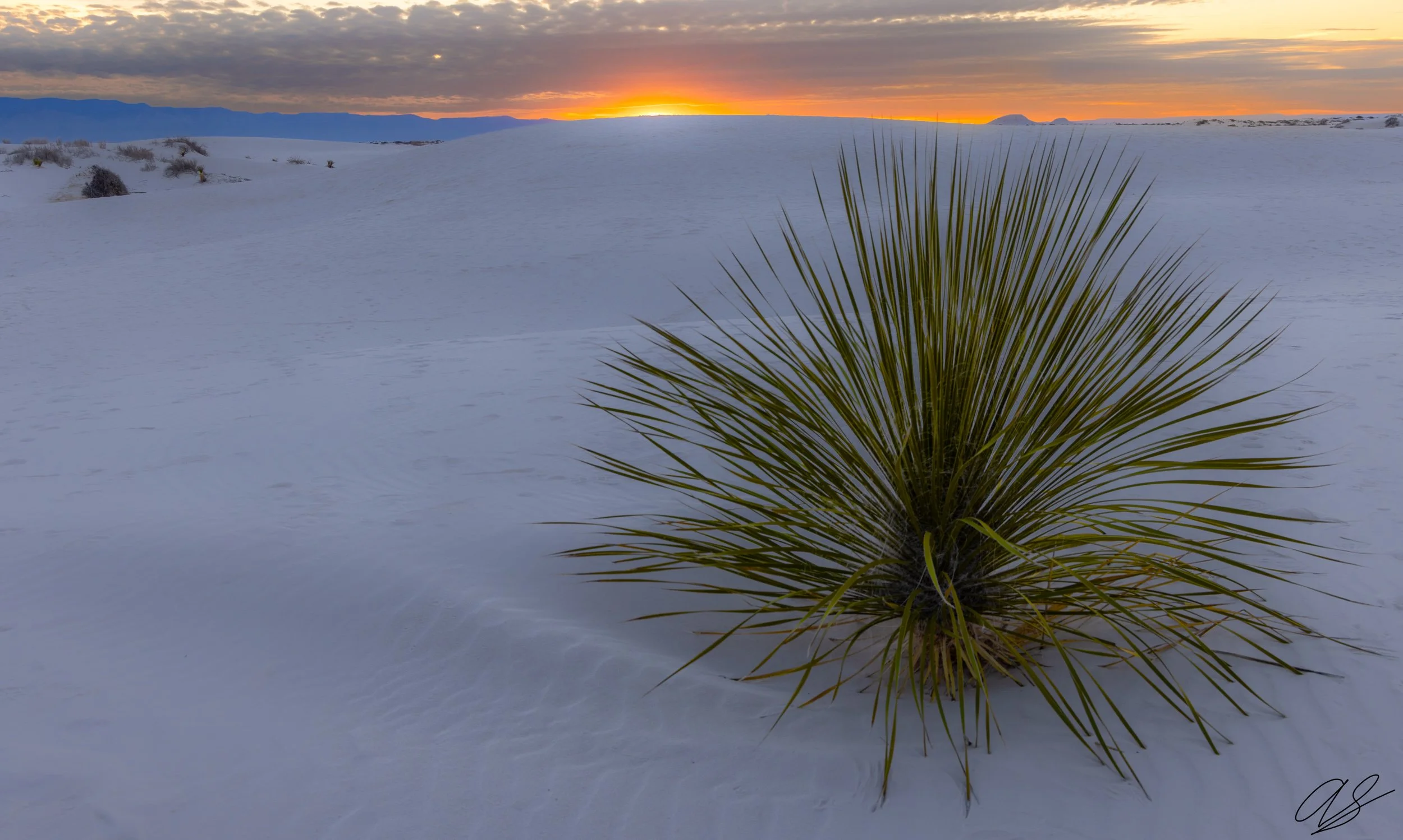 Unlike many parks, White Sands National Park is not open 24/7. Instead, the park hours are 7 AM to sunset all year. We visited in the winter and were determined to catch sunrise (which was scheduled for 7:10 AM that day). So we woke up around 5:45 and headed out to the park. We got to the park around 6:30 and were the 3rd car in line to enter the parl. Once they finally let us in, it was a mad dash to find a composition. We spotted this yucca all by itself out in the sand from the road. We quickly pulled into the lot, grabbed our cameras, and sprinted out to the bush. We got out there just in time to enjoy and capture a beautiful sunrise.